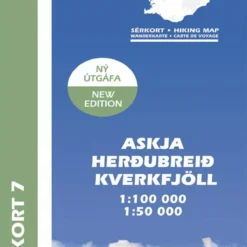 Carte de randonnée Askja, Herðubreið, Kverkfjöll 1:100 000 s’étendant d’Askja à l’ouest et à l’est de Snæfell. La carte montre les principales routes, pistes et chemins de randonnée ainsi qu’un grand nombre d’autres informations utiles : refuges et abris, terrains de camping…