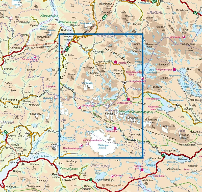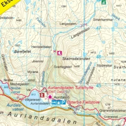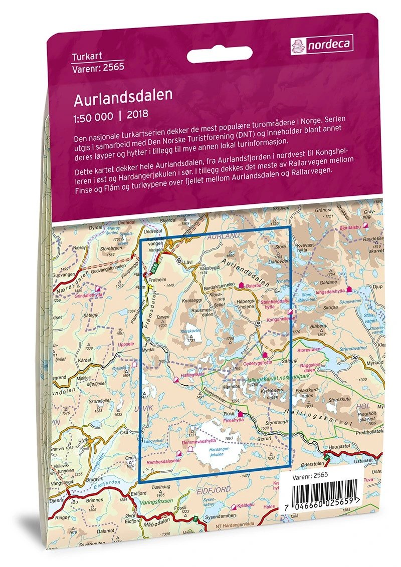 Carte de randonnĂ©e Aurlandsdalen Ă l’Ă©chelle au 1:50 000. EditĂ©e par les Ă©ditions norvĂ©giennes Nordeca, sĂ©rie Turkart n°2565. Elle couvre les lieux suivants : Aurlandsdalen, Aurlandsvangen, BlĂ„skavlen, Finse, FlĂ„m, Hallingskarvet, Hallingskarvet nasjonalpark, Myrdal.