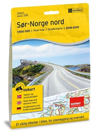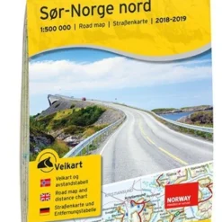 La Veikart Sør-Norge Nord des éditions Nordeca est un coffret qui contient une carte routière qui couvre la partie nord du sud de la Norvège et un index avec le nom des localités. Cette carte se positionne à partir de la ligne Voss-Hamar. Elle s’étend de Hamar au sud jusqu’à Trondheim au nord. Elle couvre les villes de Sogndal, Dombås, Ålesund et Trondheim. Echelle au 1:500 000.