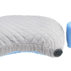 Le Air-Core Hood/Camp Pillow Ultralight de Cocoon est un oreiller de voyage possĂ©dant une chambre pneumatique gonflable, protĂ©gĂ©e dans une housse amovible qui apport douceur et confort. Une fine couche de rembourrage en fibre synthĂ©tique se trouve Ă lâintĂ©rieur, elle apporte un moelleux Ă lâoreiller et une petite isolation.