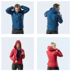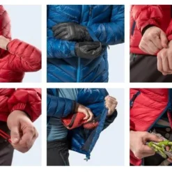 La veste a Ă©tĂ© repensĂ©e afin dâoffrir de plus grandes dâamplitudes de mouvements. Les poignets disposent dâune bande velcro pour le serrage. La doudoune compte quatre poches, deux extĂ©rieurs zippĂ©es et deux intĂ©rieurs en filet. Un cordon Ă©lastique fait le tour des hanches et un second est placĂ© dans la capuche afin de bien lâajuster. Elle peut ĂȘtre rangĂ©e dans sa housse fournie ou dans sa poche gauche.