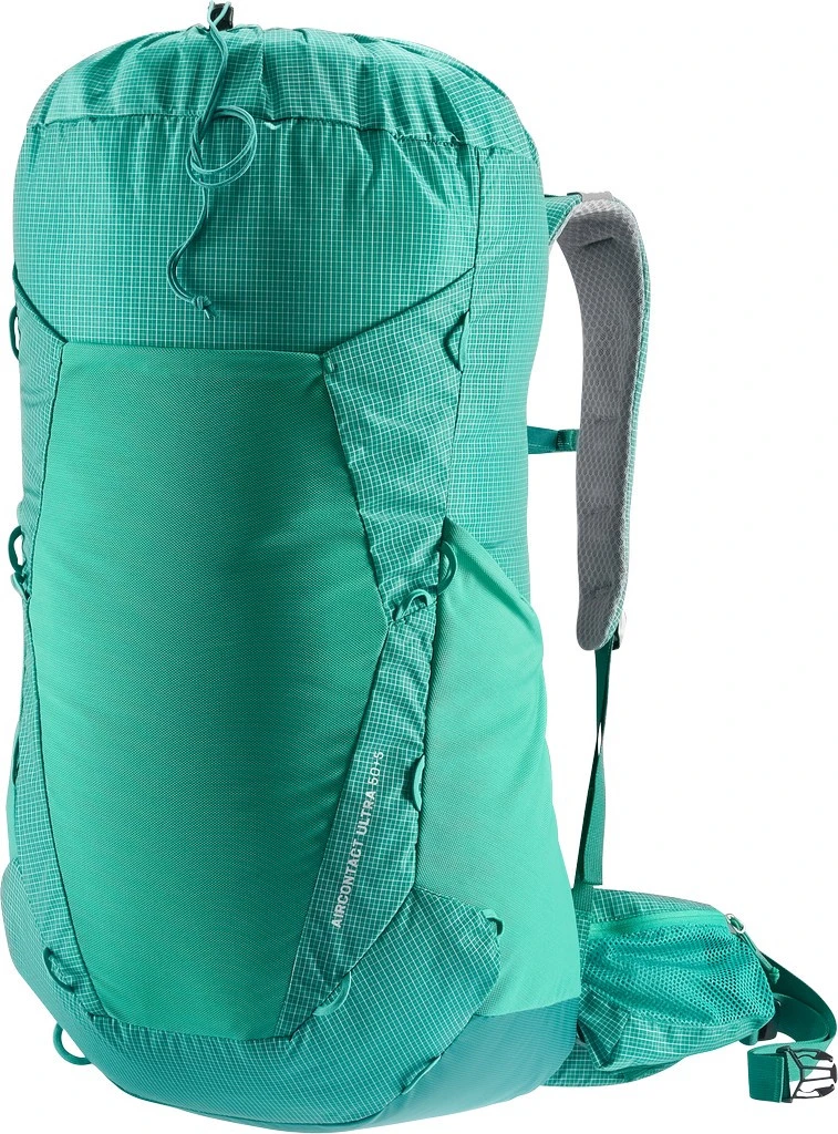 Le Deuter Aircontact Ultra 50+5 est un sac à dos de trekking robuste et confortable exempt de toutes fioritures pour un gain de légÚreté considérable. Sa grande poche unique de 50 litres est accessible par le dessus et se referme facilement grùce à un cordon de serrage. Un rabat amovible vient ensuite se positionner au-dessus.