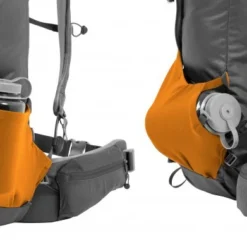- de sangles de compression latĂ©rales qui peuvent aussi ĂȘtre utilisĂ©es en partie frontale pour accrocher du matĂ©riel : tapis de sol, tente mouillĂ©eâŠ.,