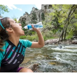 Novateur : dispositif 2-en-1 comprenant une gourde et un filtre Ă eau intĂ©grĂ©e. Le point fort de cette gourde filtrante, câest son poids lĂ©ger et son format compact. Le corps de la bouteille est souple et compressible. (Poche SoftFlask fabriquĂ©e par Hydrapak).