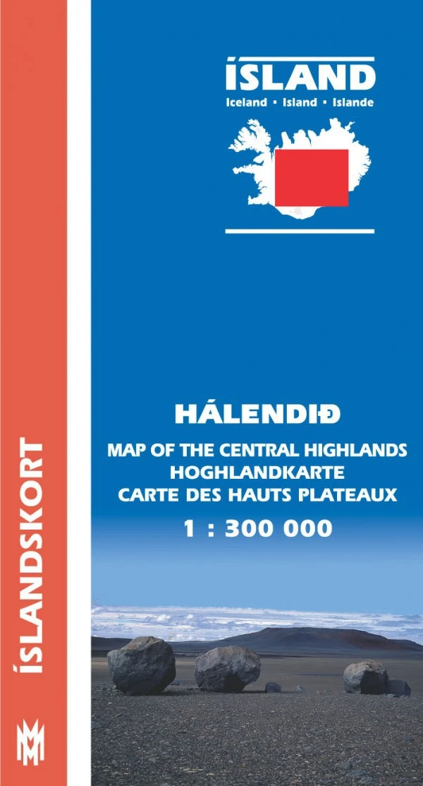 La carte des hauts plateaux fait partie du groupe des cartes des quatre parties de l’Islande de Mál og Menning. Elle est centrée sur les hauts plateaux dont elle signale les routes, les pistes et les particularités.