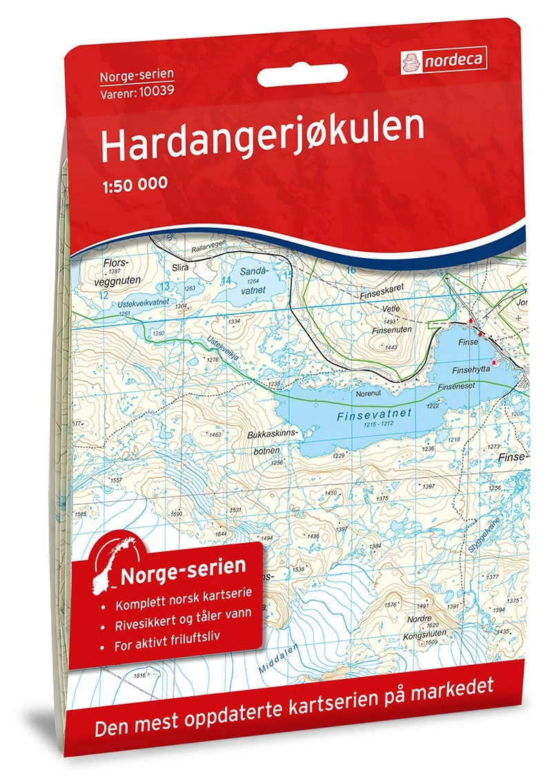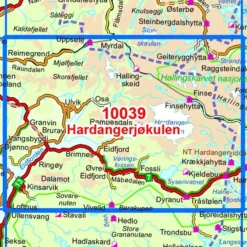 Carte topographique, de randonnée et de plein air du Hardangerjøkulen au 1 :50 000 éditée par Nordeca. Série Norge n°10039.
