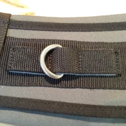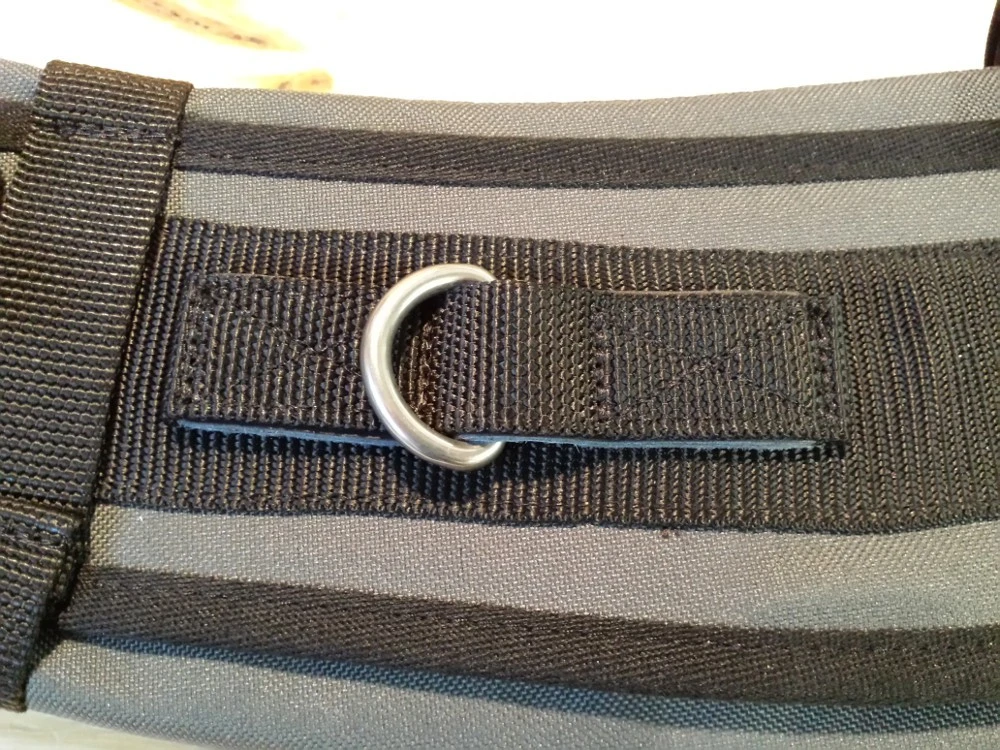 - la partie qui permet dâattacher un brancard ou un systĂšme de cordes. Elle est conçue sur une base plastique et fixĂ©e Ă lâaide de velcro et sanglĂ©e sur la ceinture rembourrĂ©e.