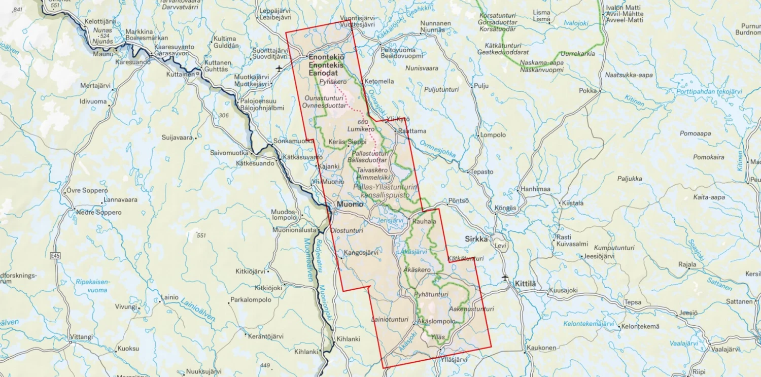 La carte Hetta Pallas YllĂ€s Aakenus de lâĂ©diteur suĂ©dois Calazo couvre au 1:50 000 la randonnĂ©e Hetta Pallas en Finlande. Lâun des sentiers de randonnĂ©e les plus populaires traversant le parc national et qui continue vers YllĂ€s et Aakenus. Permet de visualiser les sentiers de montagne de JerisjĂ€rvi et Ounasjoki.Â