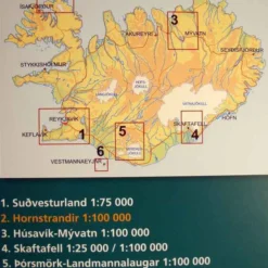 La carte Hornstrandir couvre la pĂ©ninsule la plus septentrionale dâIslande. Le Hornstrandir est situĂ© dans la rĂ©gion des fjords de lâOuest. Elle contient des informations utiles Ă la randonnĂ©e : sentiers, pistes, routes, vĂ©gĂ©tation, glacier Drangajökull. Sur le verso de la carte, il y a une liste complĂšte de tous les noms imprimĂ©s sur la carte. Ăchelle: 1:100 000. Langue: islandais, en anglais. Carte spĂ©ciale Ă©ditĂ©e par Ferdakort, sĂ©rie Serkort.