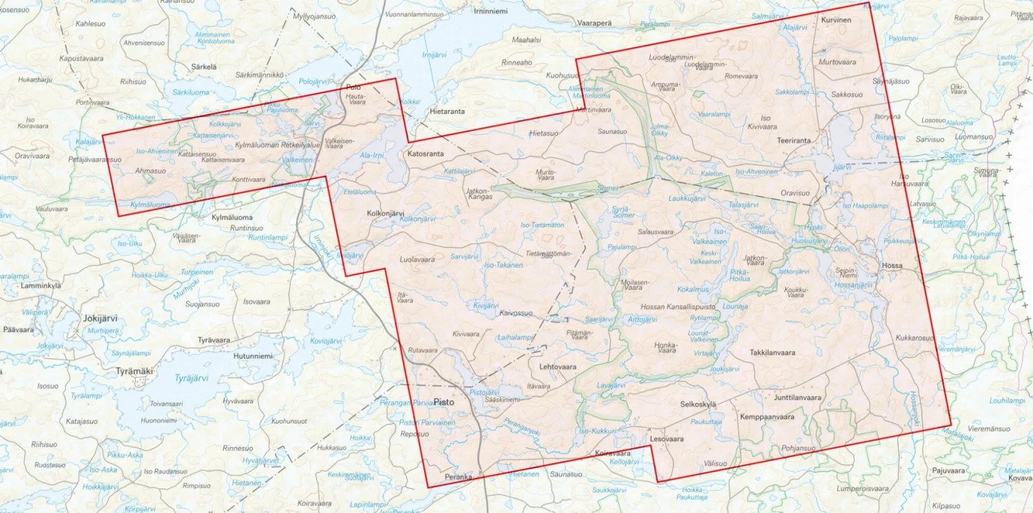La carte Hossa KylmĂ€luoma de lâĂ©diteur suĂ©dois Calazo couvre la rĂ©gion de Hossa (parc national le plus rĂ©cent de Finlande). Un itinĂ©raire balisĂ© de 90 km peut se parcourir Ă pied, Ă vĂ©lo ou en ski de randonnĂ©e nordique. Cette carte indique les sentiers de randonnĂ©es et comprend une lĂ©gende en anglais. Â