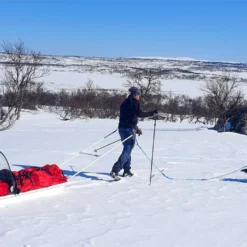 Une pulka qui a été éprouvée sur le terrain. Les matériaux ont été choisi avec soin pour un usage facile, prolongé et facilement réparables. Le HPDE assure une bonne glisse avec des rails offrant plus de maintien en dévers. Chaque pulka est numérotée, car la production est limitée et 100% réalisée en SuÚde. Le Jemtlander est une belle solution pour aller se balader en montagne et si nécessaire affronter des conditions arctiques.