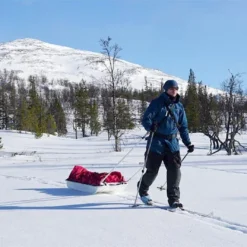 Une grande pulka de 300L qui a été éprouvée sur le terrain. Les matériaux ont été choisi avec soin pour un usage facile, prolongé et facilement réparables. Le HPDE assure une bonne glisse avec des rails offrant plus de maintien en dévers. Chaque pulka est numérotée, car la production est limitée et 100% réalisée en SuÚde. Le Jemtlander est une belle solution pour aller se balader en montagne et si nécessaire affronter des conditions arctiques.