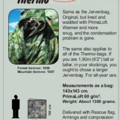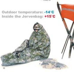 Le Jervenbag comprend 3 zips de fermeture et 2 zips latĂ©raux pour sortir les bras. Aux extrĂ©mitĂ©s des Ćillets permettent de suspendre le Fjellduken. Il est livrĂ© avec des manchons de protection pour les bras et un drapeau orange pour se signaler dans les situations dâurgence.