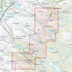Cette carte couvre la partie de la Kungsleden de Kvikkjokk à Adolfström ainsi que les lieux suivants : Jäkkvik, Västerfjäll, Bäverholmen, Vuonatjviken.
