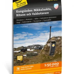 Kungsleden : Nikkaluokta, Ritsem et Vakkotavare de l’Ă©diteur suĂ©doise Calazo est une carte de randonnĂ©e Ă l’Ă©chelle 1:50 000 qui couvre la partie nord de la voie royale entre SĂ€lka et Vakkotavare.