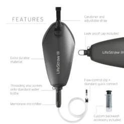 Il peut ĂȘtre utilisĂ© avec le sac Ă gravitĂ© fourni, ou comme paille (Flex) ou encore fixĂ© Ă un systĂšme dâhydratation ou avec une bouteille dâeau en plastique.