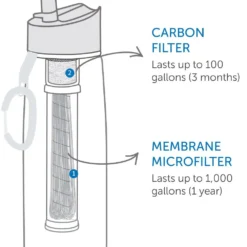Le filtre Ă eau portable LifeStraw Go Tritan Renew 0.65L est une gourde comprenant une paille filtrante permettant de purifier jusqu’Ă 4000 litres d’eau. Le dispositif est extrĂȘmement simple et ne nĂ©cessite pas d’utilisation de produits chimiques :