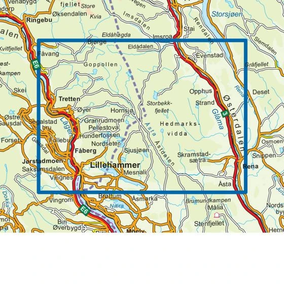 Cette carte dĂ©taillĂ©e couvre la ville olympique de Lillehammer et la rĂ©gion de Rena qui offre dâexcellentes possibilitĂ©s de randonnĂ©es pĂ©destres, de treks et de sorties en ski de randonnĂ©es nordiques. Dans ce secteur, vous pourrez dĂ©couvrir la nature norvĂ©gienne, lors de vos randonnĂ©es dans des terrains forestiers, des zones ouvertes et des crĂȘtes avec de belles vues.