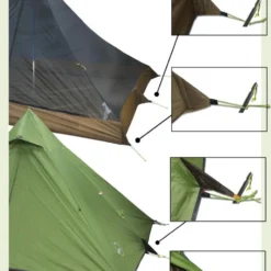 Le montage est facile, il nécessite un bùton de randonnée (137-140 cm) ou un mùt (accessoires non fournis) pour dresser le tipi.