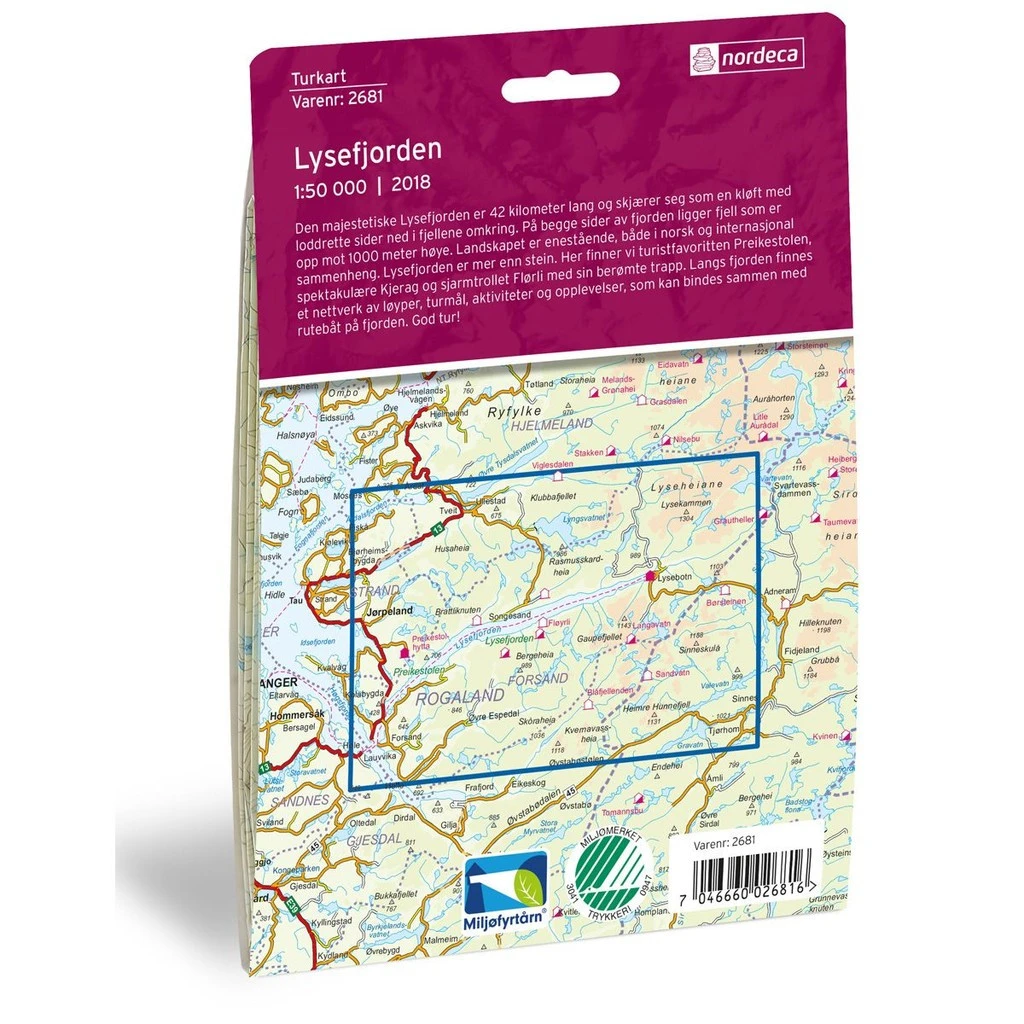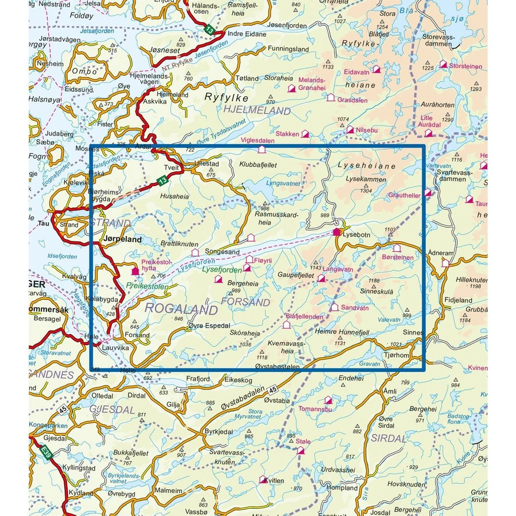 Carte de randonnée n°2681 couvrant le secteur Lysefjorden. Echelle au 1 : 50 000