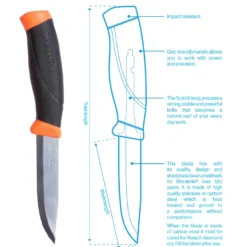 Le Companion (S) de Morakniv est un couteau fabriquĂ© en SuĂšde. Ce couteau outdoor a une lame en acier inoxydable de trĂšs bonne qualitĂ© offrant un trĂšs bon tranchant. Il est dotĂ© dâun manche en plastique avec un revĂȘtement en caoutchouc assurant une bonne prise en main.