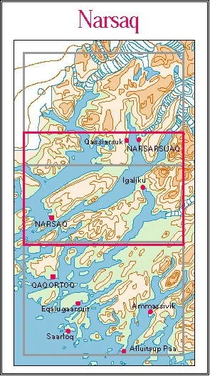 Narsaq – carte de randonnĂ©e n°2 du Groenland. EditĂ©e par Greenland Tourism.