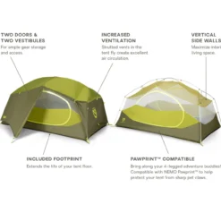 LâAurora 2P de Nemo est une tente dĂŽme, autoportante, conçue pour un usage 3 saisons. Son volume intĂ©rieur est spacieux et sera confortable pour 2 campeurs. Ce qui caractĂ©rise ce modĂšle Nemo, câest son habitabilité ! Son architecture dâarceaux prĂ©-courbĂ©s et de murs verticaux permettent dâaugmenter le volume intĂ©rieur. Elle offre une hauteur sous toit de 112 cm. Lâarceau sommital a pour but de conserver un bon espacement entre les parois.