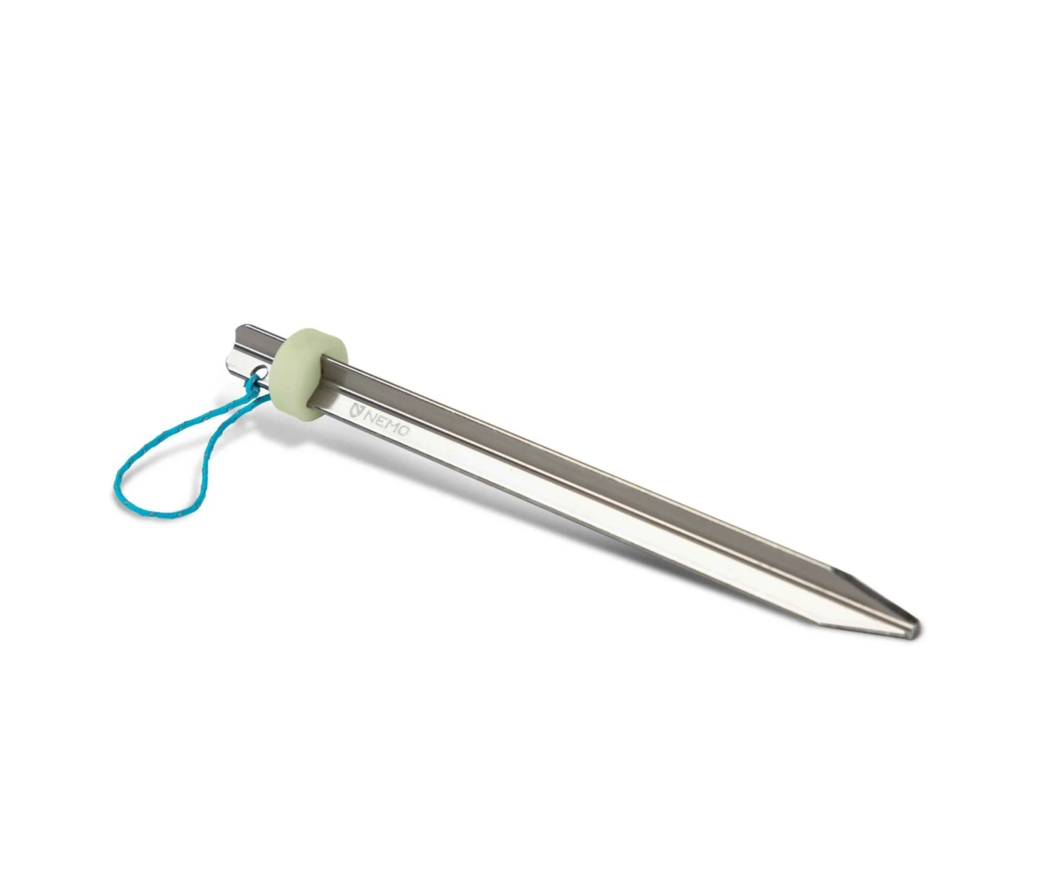 Le Sweepstake de Nemo Equipment est un piquet de tente qui rĂ©sout de petits problĂšmes avec des solutions simples. Dâabord, câest une sardine en aluminium en forme Y qui se plante facilement dans tous les types de sols. Le petit curseur luminescent vous permet non seulement de visualiser le piquet dans lâobscuritĂ©, mais sert Ă©galement de nettoyant intĂ©grĂ©. En effet, le curseur glisse simplement le long du corps de la sardine afin dâĂ©liminer la saletĂ©, la boue et les particules incrustĂ©es sur la surface de lâaluminium. Cela signifie, que votre sac de rangement ne sera pas plein de sable ou de terre aprĂšs le premier bivouac.