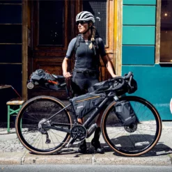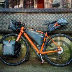 Sacoche de cadre qui ne gĂȘne pas lâutilisateur et qui dĂ©sĂ©quilibre le vĂ©lo. Construction totalement impermĂ©able qui empĂȘche lâeau de rentrer Ă lâintĂ©rieur. Conçue pour le Bikepacking.