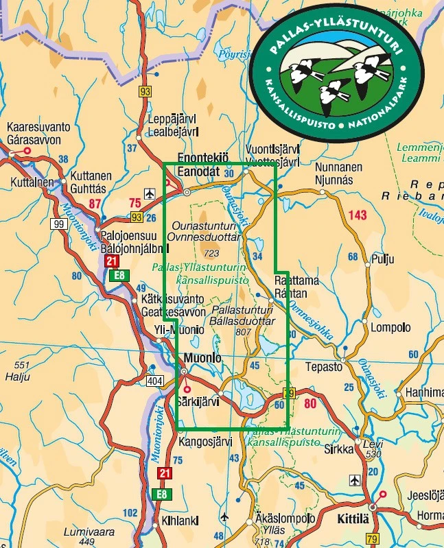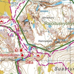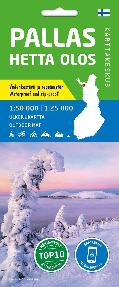 La carte Pallas Hetta Olos au 1 : 50 000 couvre la partie nord du parc national de Pallas-YllĂ€stunturi. Elle permet de visualiser les villages de Enontekiö au nord et Munio au sud. Carte imprimĂ©e sur les 2 cĂŽtĂ©s. LĂ©gende en anglais. Comprend des informations touristiques : camping, hĂ©bergement, refugesâŠ