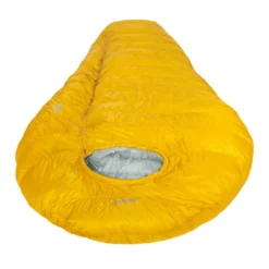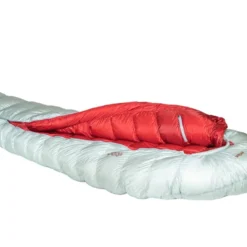 Lâenveloppe du sac de couchage G400 est un tissu en Pertex Quantum Ripstop traitĂ© DWR contre lâhumiditĂ©. La fermeture Ă©clair semi-automatique de 3 millimĂštres remonte sur le dessus. Cela permet de l’atteindre plus facilement, notamment la nuit dans le noir, mais surtout, dâobtenir une construction plus anatomique au niveau des Ă©paules, ne nĂ©cessitant pas de velcro pour fermer lâouverture. Muni dâun bloqueur, une fois celui-ci enclenchĂ©, le curseur de la fermeture eclair ne coulisse plus. Sur le pourtour du visage, lâisolation est assurĂ©e en fibre synthĂ©tique Climashield. Celle-ci est plus adaptĂ©e Ă lâhumiditĂ© expirĂ©e durant la nuit, et elle ajoute un confort supplĂ©mentaire au niveau du cordon de la capuche.