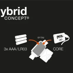 - Fonctionne avec 3 piles AAA/LR03 ou batterie rechargeable Petzl Core (incluse)
