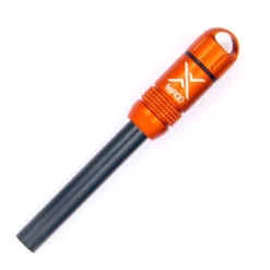 La tige en ferrocĂ©rium FireRod de marque amĂ©ricaine Exotac est lĂ©gĂšre, compacte tout en offrant une bonne prise en main. Dans lâembout se cache une petite capsule permettant de stocker des allume-feux QuickLight. Avec lâaide dâun couteau utilisĂ© comme grattoir et dâamadous, elle permet dâallumer par friction un feu dans toutes les conditions mĂ©tĂ©o.