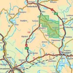 PyhĂ€-Luosto est une zone situĂ©e au nord-est de Rovaniemi et au nord de KemĂŻjarvi. Cette carte permet de visualiser la zone comprise entre les villages de PyhĂ€ et de Luosto. A l’ouest, elle couvre les environs du village Pelkosenniemi et Ă l’est le hameau de Torvinen.