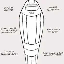 Le sac de couchage Expedition 1200 de Rab dispose dâun duvet dâoie dâexcellente qualitĂ©. Il contient 1,2 kg de duvet dâoie europĂ©en hydrophobe certifiĂ© RDS de 850 cuin. La marque ne communique pas de tempĂ©rature de confort pour ses sacs de couchage grand froid, mais de notre expĂ©rience, celle-ci est dâenviron -20/-28°C. Sa coupe lĂ©gĂšrement surdimensionnĂ©e par rapport Ă dâautre modĂšle de la marque, permet dâutiliser le sac de couchage avec des vĂȘtements dâexpĂ©dition volumineux.