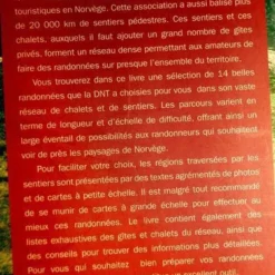 Le guide « Randonnées en Norvège » édité par l’association touristique norvégienne Den Norske Turistforening (DNT) décrit 14 propositions de randonnées dans tout le pays. Chaque idée d’itinéraires est dotée d’une présentation générale ainsi que de détails : niveau de difficulté de la randonnée, balisage, durée, référence de la carte, noms des refuges. Randonnée en Norvège est un guide précieux pour découvrir le pays à pied.