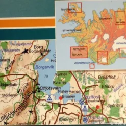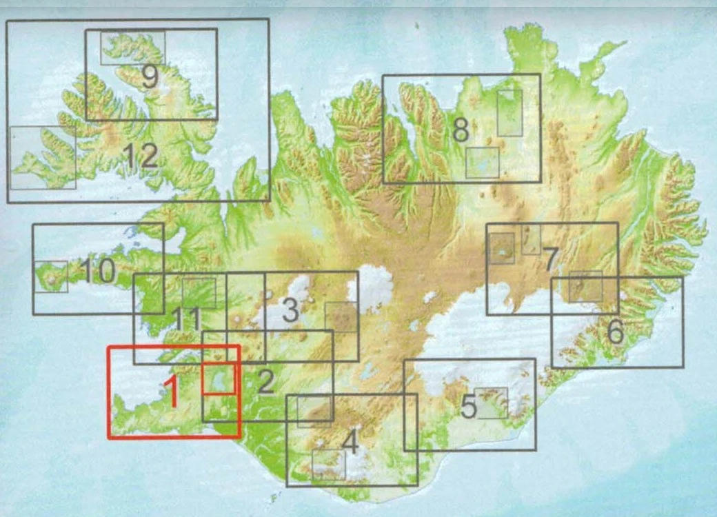 Carte de randonnée Reykjanes, Þingvellir 1:100 000 s’étendant de Reykjanest à l’ouest et à l’est de Þingvallavatn. La carte montre les principales routes, pistes et chemins de randonnée ainsi qu’un grand nombre d’autres informations utiles : refuges et abris, terrains de camping…