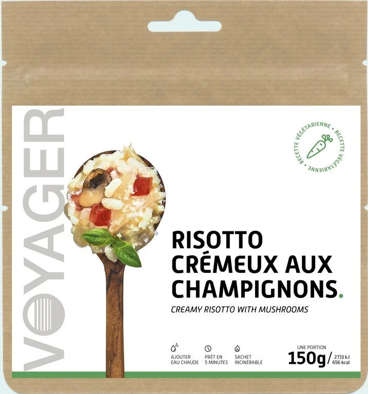 Le Risotto crĂ©meux aux champignons Voyager est l’association de riz, de champignons et de fromage.