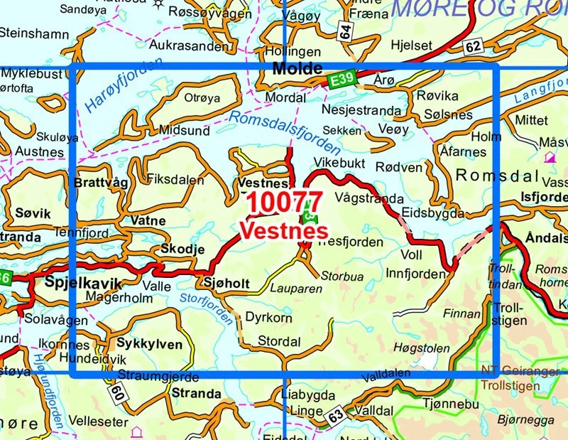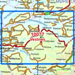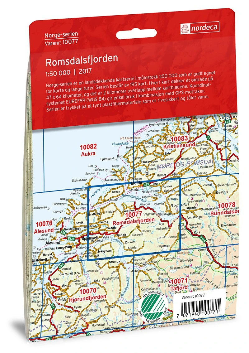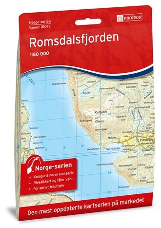 Carte topographique de Romsdalsfjorden au 1:50 000 éditée par Nordeca, série Norge-serien. Numéro de carte 10077.