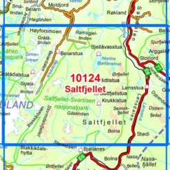La carte de randonnĂ©e Saltfjellet n°10124 couvre le parc national de Saltfjellet-Svartisen et les lieux suivants : Beiardalen, BlakkĂ„dalen, Junkerdalen, LĂžnselva, Saltdalen, Saltfjellet, Saltfjellet-Svartisen nasjonalpark, Simlebreen, Storglomvatnet, Svartisen, Ărfjellet.
