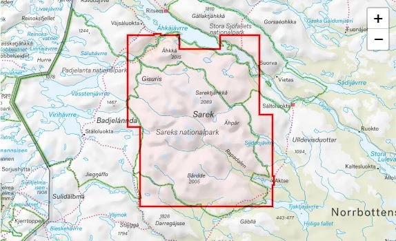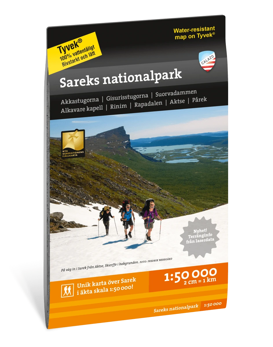 La carte Sareks nationalpark de lâĂ©diteur suĂ©dois Calazo est une carte au 1 : 50 000 qui couvre la rĂ©gion du parc national du Sarek. Au recto les plus hauts sommets dont le SarektjĂ„hkkĂ„. Au verso le Rapadalen, le massif de BĂ„rdde et une partie du sentier de grande randonnĂ©e, la Padjelantaleden.