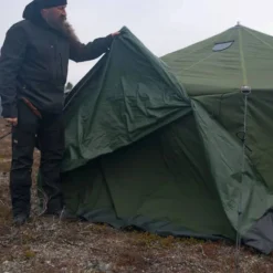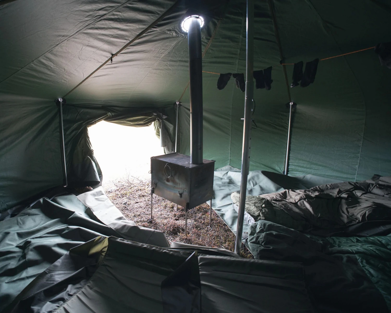 Savotta a dĂ©veloppĂ© la FDF 10 Tent pour lâarmĂ©e finlandaise. Cette tente pour 10 personnes a Ă©tĂ© conçue pour une utilisation intensive, pour les climats nordiques et dans un usage 4 saisons. Elle est simple, facile Ă installer et robuste.