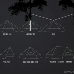 - Wall Piece : il sâagit dâun Ă©lĂ©ment (la moitiĂ© de la tente qui peut ĂȘtre montĂ© seule (en mode Loue) avec un mat tĂ©lescopique par exemple (vendu sĂ©parĂ©ment).