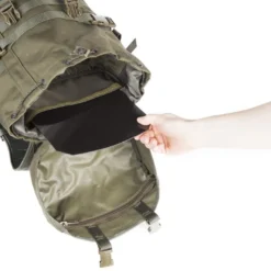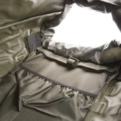 Il est équipé d’une grande poche principale. L’ouverture du sac est fermée par un cordon et sécurisée par un collier de protection imperméable. L’ouverture est recouverte d’une rabat qui épouse le haut du sac et qui se ferme par deux sangles. Le rabat est fixé avec des sangles réglables des deux côtés de sorte qu’il « flotte » et permet un suremballage facile. Si nécessaire, la longueur des sangles fournit plus d’espace sous le rabat permettant par exemple de glisser du matériel supplémentaire : un sac de couchage ou un matelas.