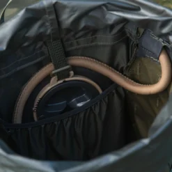 A l’intérieur du sac, il y a une poche (23 x 37 cm) pour insérer un système d’hydratation avec sortie d’un tuyau pipette à droite et à gauche. Cette poche peut facilement contenir par exemple un petit ordinateur ou autres accessoires.