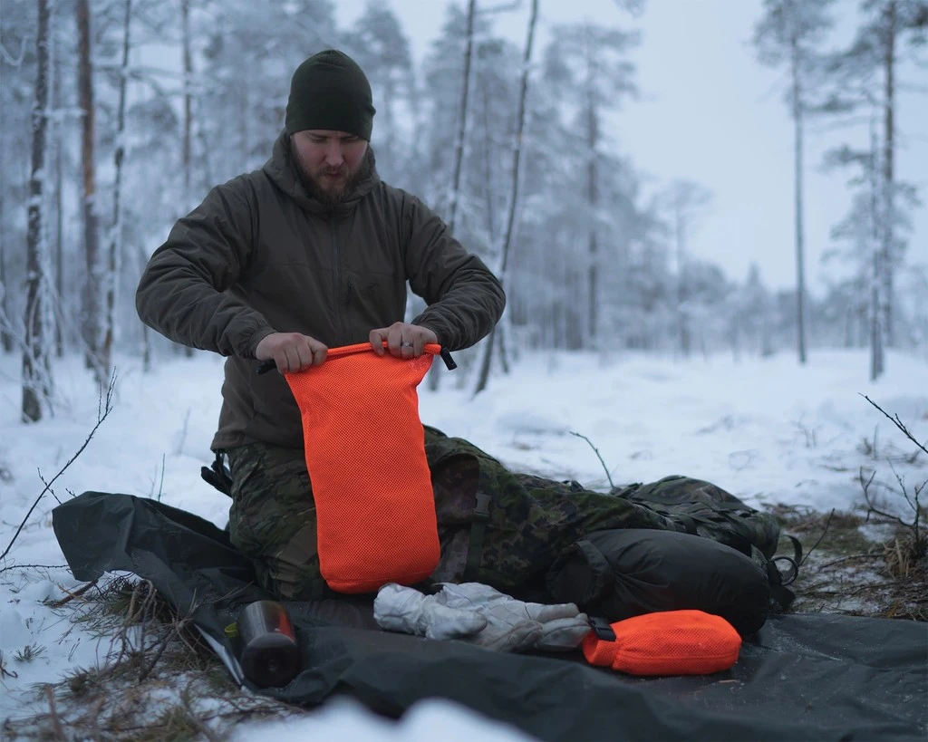 Le Rolltop Stuffsack Mesh de Savotta est un sac de rangement en maille serrée et robuste, disponible en plusieurs couleurs et tailles. La maille permet de laisser respirer son équipement, voire de sécher le matériel humide. Elle est aussi transparente, pratique pour retrouver facilement ce que vous cherchez.