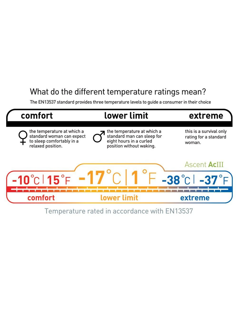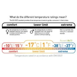 LâAscent ACIII de Sea to Summit est un sac de couchage 4 saisons. Il nâest pas prĂ©vu pour affronter les froids les plus extrĂȘmes ; mais avec sa tempĂ©rature confort de -10°C, vous pourrez envisager de faire du bivouac hivernal. Vous aurez la certitude en automne ou en montagne, lorsque les tempĂ©ratures baisseront, de ne pas avoir froid.