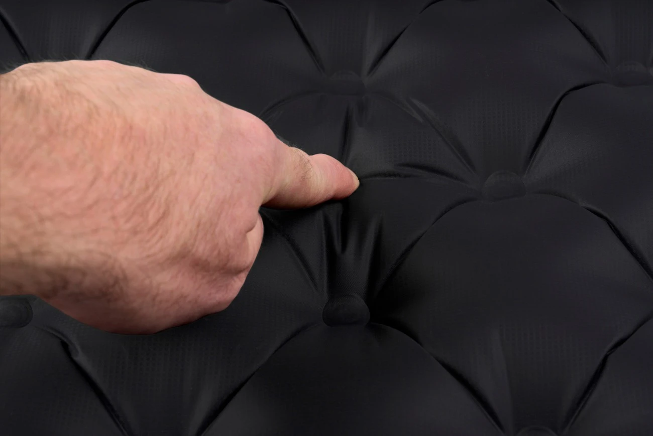 Pour obtenir une Ă©paisseur de 10 cm, Sea To Summit utilise des boucles en TPU pour connecter les couches de tissu supĂ©rieures et infĂ©rieures. Ces boucles permettent de crĂ©er de plus grandes poches dâair lorsque le matelas est parfaitement gonflĂ©.