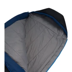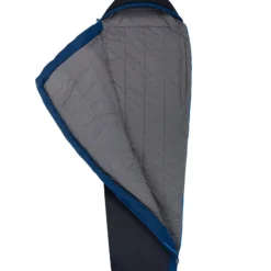 Sa forme fuselée et quasi-rectangulaire assure un confort accru et une grande liberté de mouvement. La longue fermeture éclair permet de transformer le sac de couchage en grande couette.