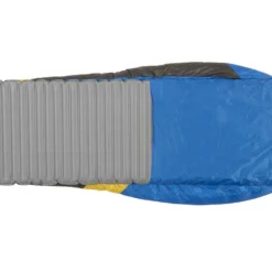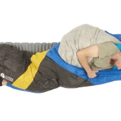 Sac de couchage avec une température confort de 2°C. Forme momie confortable, avec rabat mais sans fermeture éclair, laissant place à la liberté de mouvements.